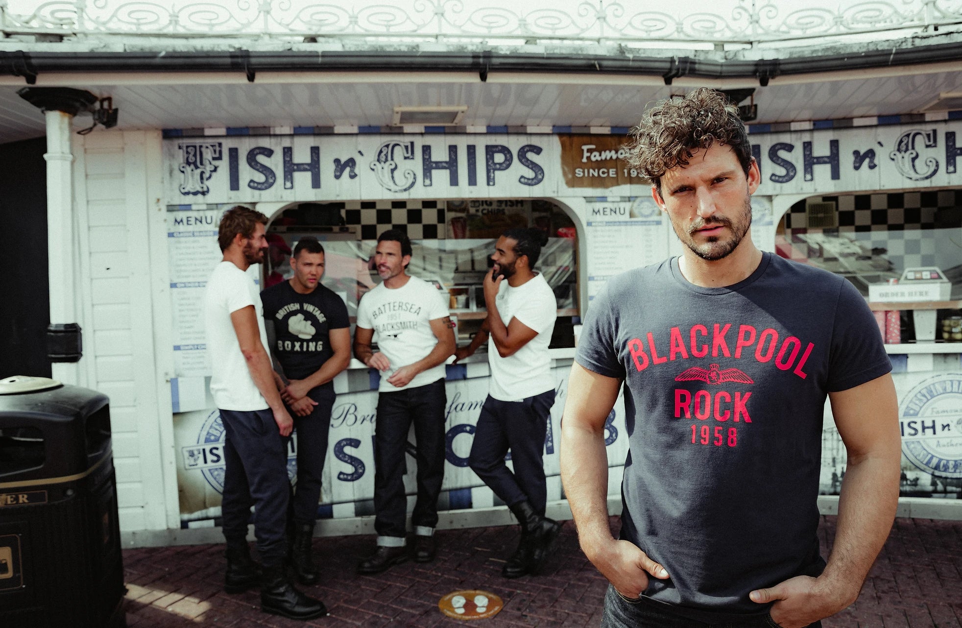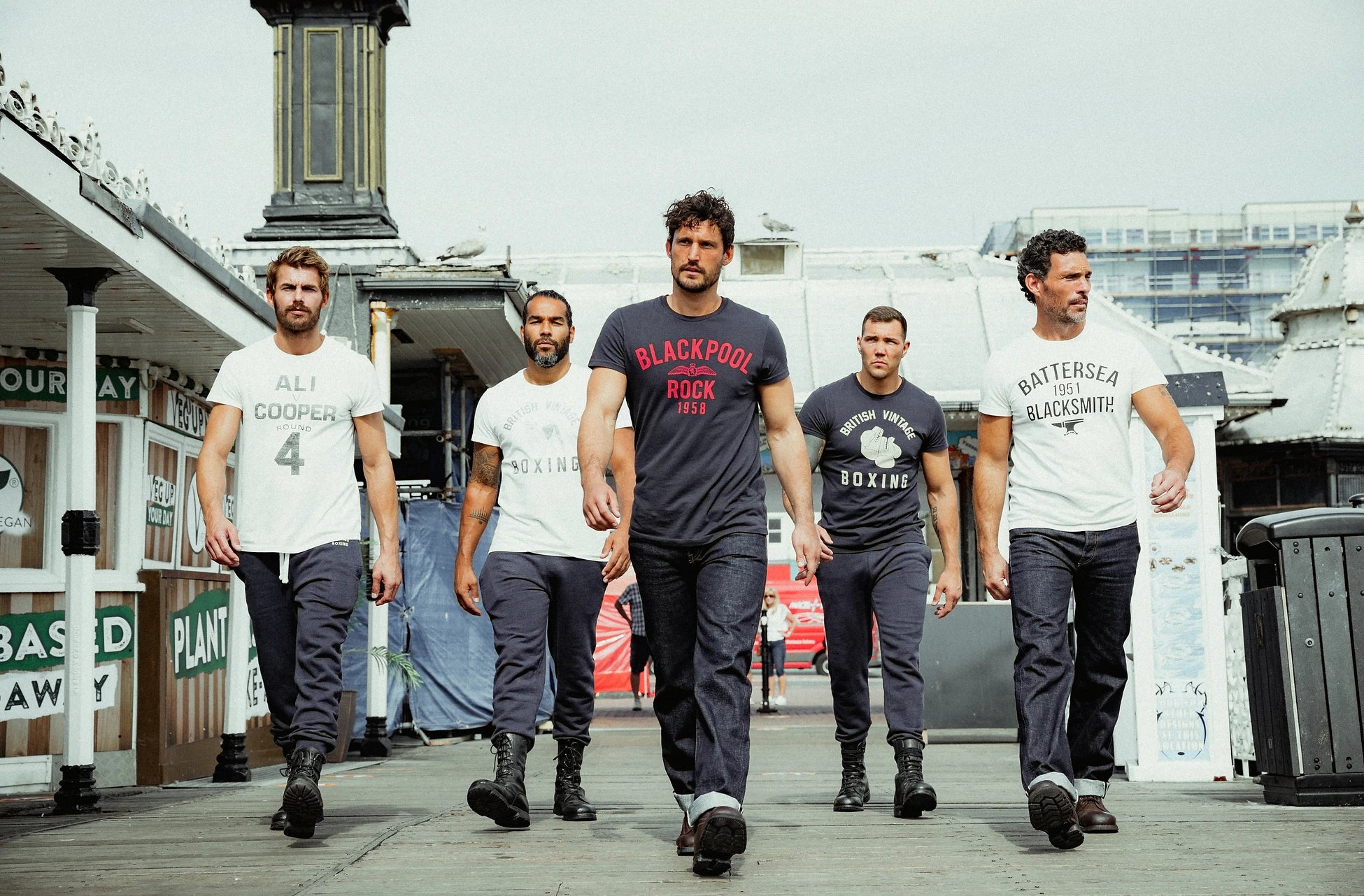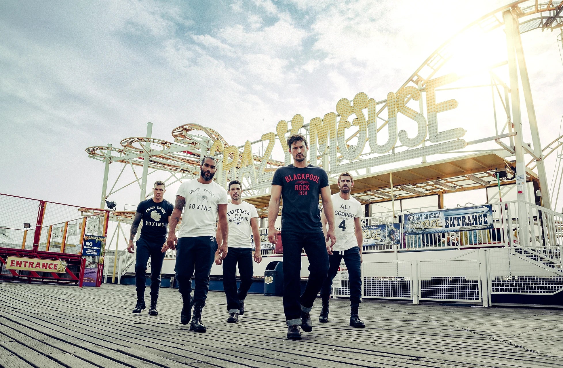 Everyday ChampionsDay Trip is about reconnection, couched within the familiar, English heritage backdrop of Brighton Palace Pier, we drew inspiration from retro comic strips, old-school boxing imagery and the pioneering, iconic Brit flicks ‘Quadrophenia’ and ‘Lock, Stock and Two Smoking Barrels’ to create a distinctly British optic in mood and style. The shoot is a nod to the collective, timeless spirit of brotherhood, expressed through the lens of our effortlessly stylish, charismatic everyday champions.