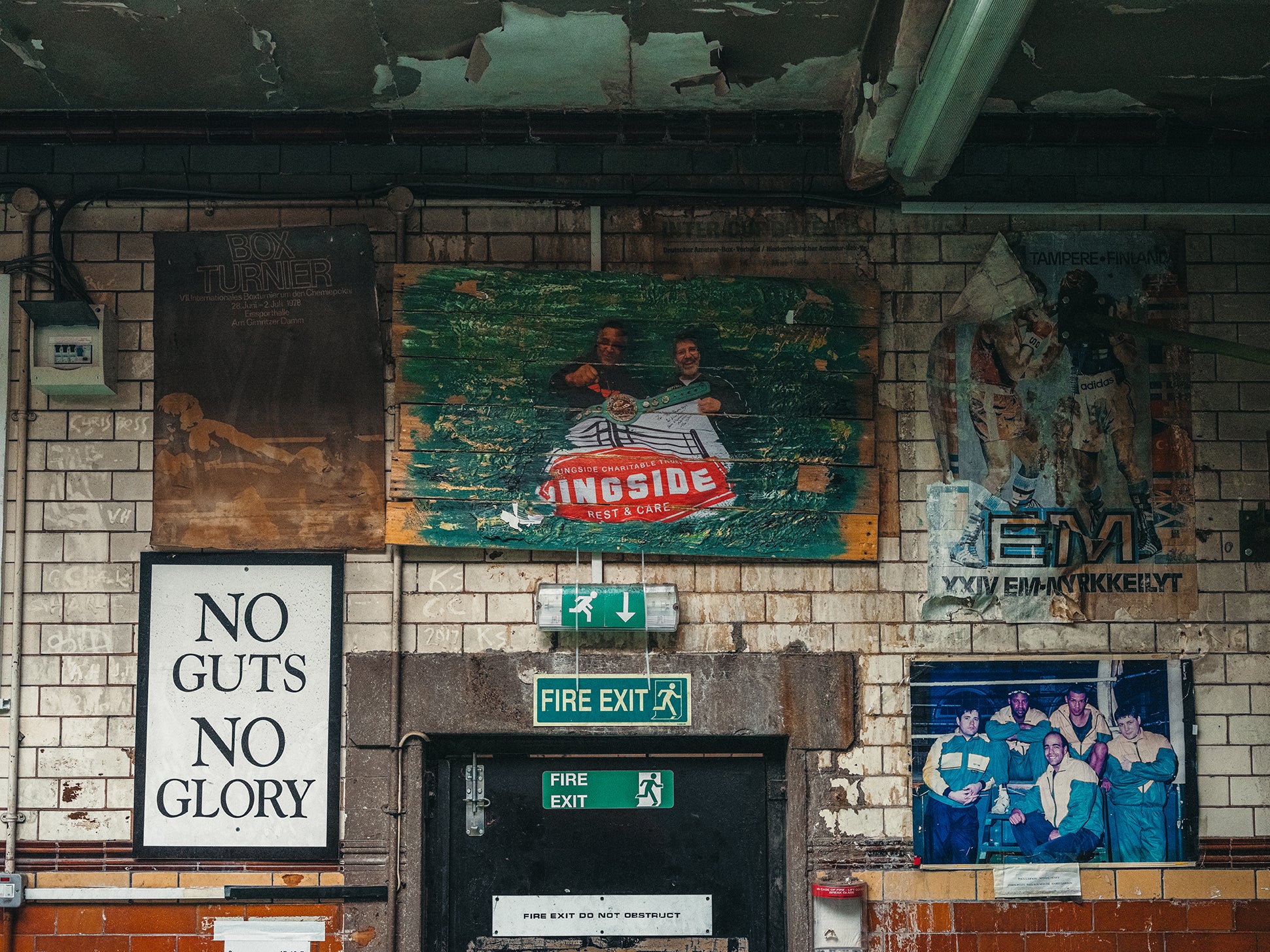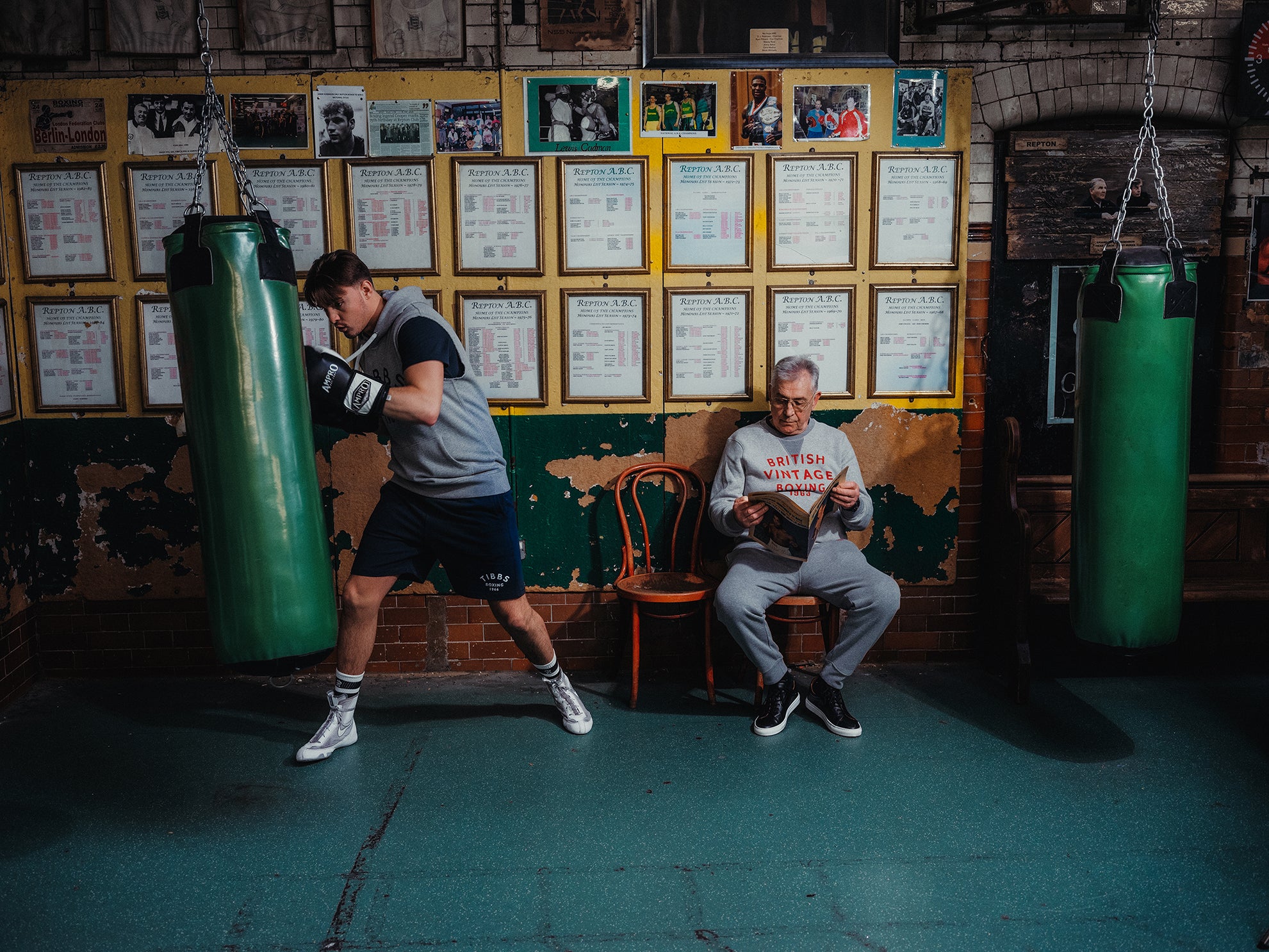 Considered the oldest boxing club in England, the Repton BC is a living, breathing, iconic monument of British boxing heritage; frozen in glory, where paint is left to peel in celebration of the golden years and where triumphs were and are forged in a cauldron of blood and sweat. A rare jewel that we were honoured to use for our latest shoot.